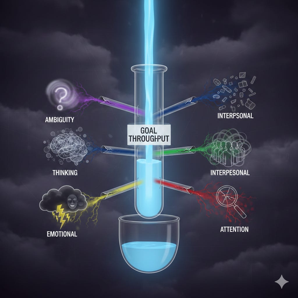 The core idea: minimize unnoticed energy leaks to maximize your “Goal Throughput.” Leakage shows up in many forms